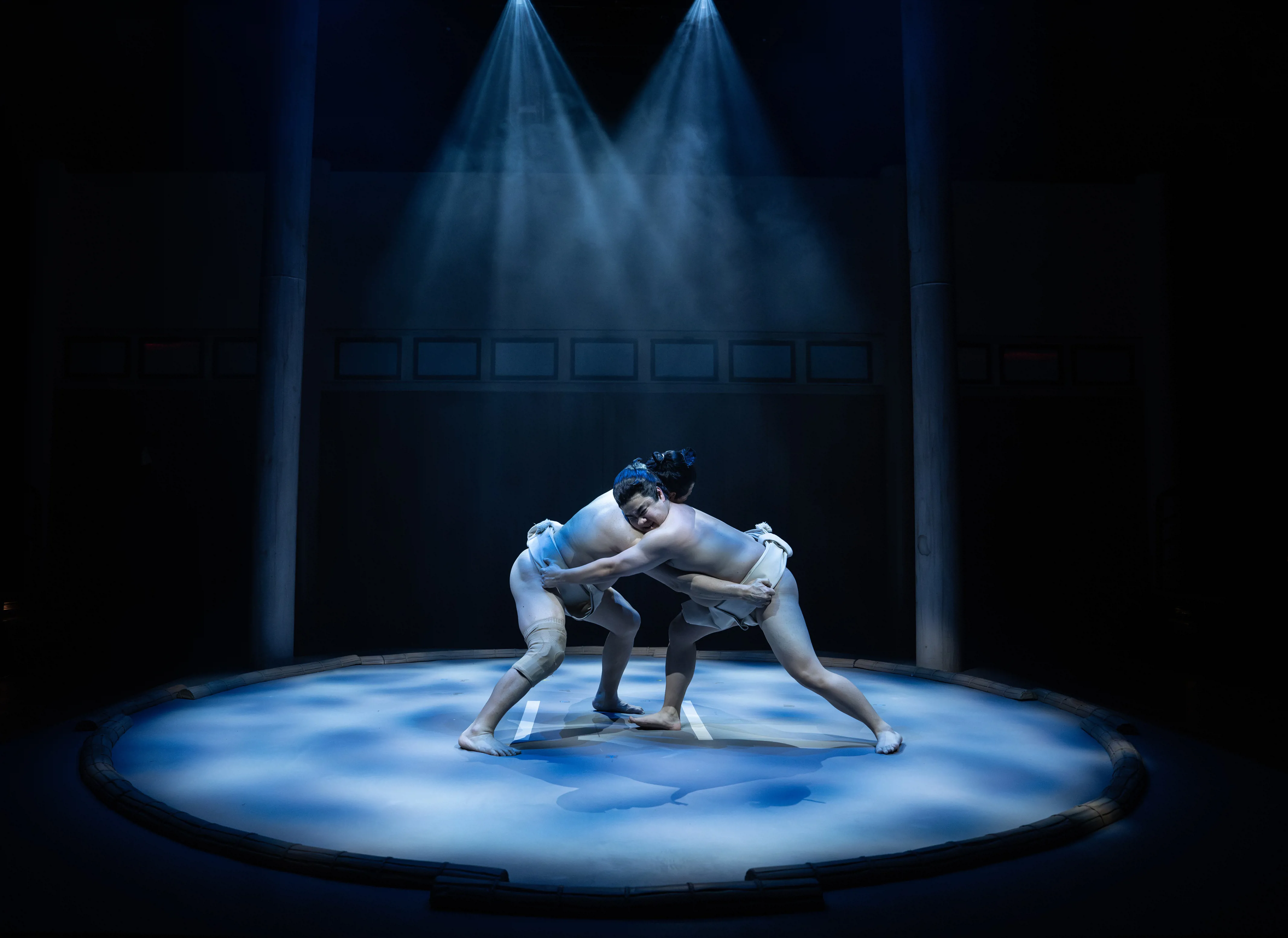 The challenge of designing a sumo world for American audiences required Chin and Ohigashi to balance cultural authenticity with theatrical effectiveness. For Chin, the key to designing the set was creating an immersive environment that would make the audience feel connected to the sumo experience. "Sumo is a full-body, visceral sport," he says. "I wanted to create a stage that felt as intense and immediate as the sport itself, while still respecting its tradition."